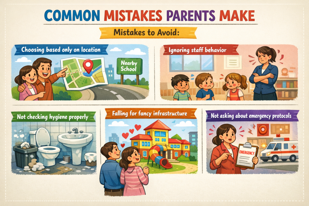 Parents often confuse a good-looking facility with a safe one. They are not the same. Some of the best daycare facilities in Faridabad may look simple but follow strict safety measures.